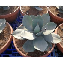 souvent surnommée "agave artichaut" en raison de sa rosette dense et arrondie, aux feuilles épaisses bleu-gris finement bordées d’épines brun-rouge.