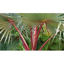 Il s’agit d’un palmier de grance taille (15 mètres); La couleur rouge dominante des jeunes plantes  s’efface peu à peu jusqu’à ce que les feuilles, cireuses, acquièrent leur couleur vert-bleuté définitive.