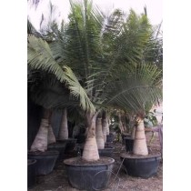 Palmier Cespiteux dépassant 15m à l'âge adulte. ses feuilles ont une coloration grisâtre. Les premières folioles se transforment en fortes épines.
