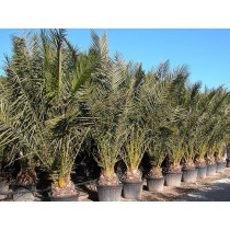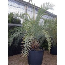 DESCRIPTION :Il est morphologiquement distinct du véritable palmier dattier en raison de son inflorescence plus courte et de ses graines arrondies et plus courtes. Il tolère un degré de gel similaire à celui du vrai palmier dattier (-8°C).