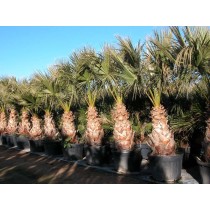 Grand Palmier de 15 à 18m avec un tronc épais (1m de diamètre), Ses feuilles sont palmées.