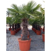 Son tronc (stipe) est garni de fibre marron gris sur toute sa hauteur, ses feuilles sont palmées en forme d'éventaille. Il atteint à l'âge adulte une taille de plus de 15m.